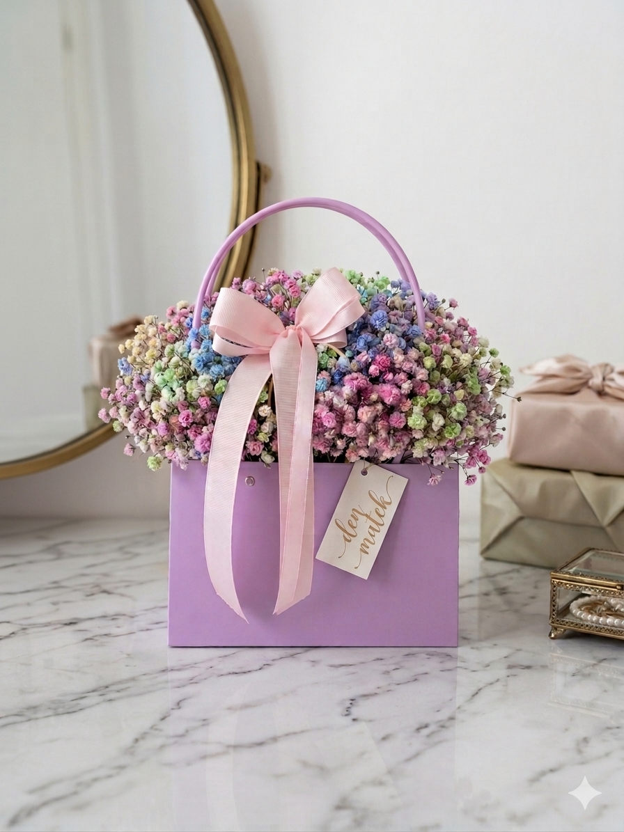 Taštička s barevným závojem o velikosti 22×13,5 (bez uší) .